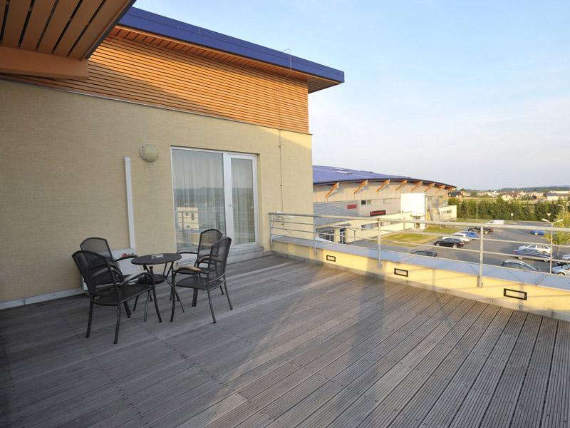 The luxurious apartment offers comfortable undisturbed bedroom with antechamber, double bed, bathroom facilities, Wi-fi, satellite, LED TV, minibar and a spacious terrace. This apartment is ideal for newly wed couples. Upon request, the suite can be embellished for the occasion. For the price of CZK 2500, - per person or CZK 3000, - per two people you will get the best suite from the Kravaře Buly Aréna Hotel. The breakfast available, price 150 CZK.